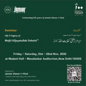 Jamiat to hold seminar on its first president on – 21–22 November New Delhi, 18 November 2025: As part of the centenary events of Jamiat…