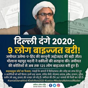 दिल्ली दंगे 2020: 9 लोग बाइज्जत बरीजमीयत उलेमा-ए-हिंद के अध्यक्ष मौलाना महमूद मदनी ने वकीलों की कानूनी जद्दोजहद की सराहना कीजमीयत की कोशिशों से अब…
