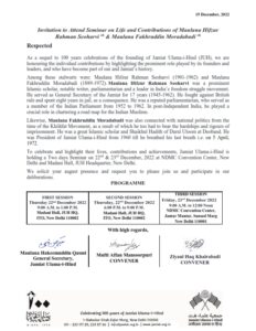 on 22nd & 23rd December, 2022 at NDMC Convention Center, New Delhi and Madani Hall, JUH Headquarter, New Delhi.